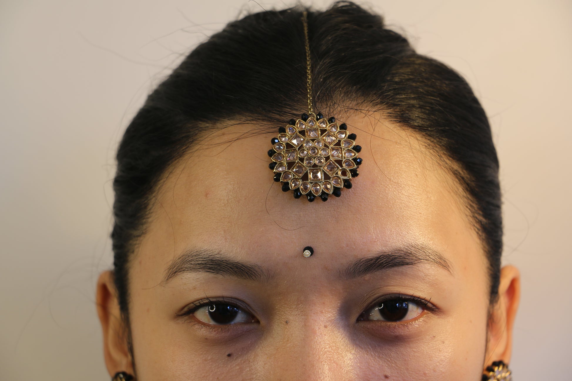 Enhance your elegance with the Emerald Majesty Choker Set, featuring a beautifully crafted choker necklace, earrings and matching head ornament (Sirband). This exquisite set showcases dazzling green gemstones set in intricate silver detailing, adding a touch of sophistication and luxury to any outfit. The choker-style necklace, with its multiple rows of sparkling stones and silver embellishments, gracefully adorns your neckline, while the head ornament complements the set perfectly, adding a regal touch to your look. Ideal for weddings, special occasions, or elevating your everyday style, this set is a timeless addition to your jewellery collection. Experience the brilliance and craftsmanship of this stunning set, designed to make you shine.